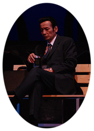缶ビール片手に駅のベンチで次々に来る電車を見送っているサラリーマン川口陽一。